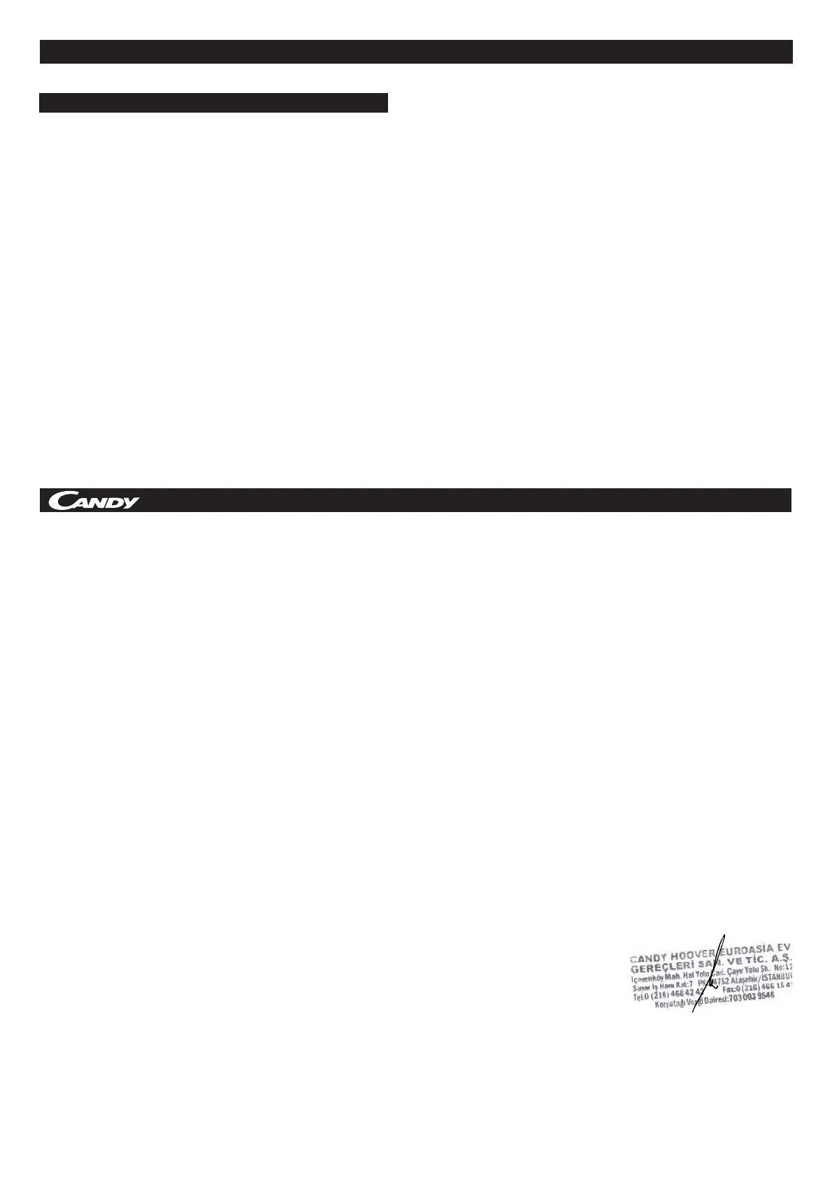 Candy Hoover Euroasia tarafından sağlanan garanti şartları aşağıdaki koşullarda geçersiz olacaktır.