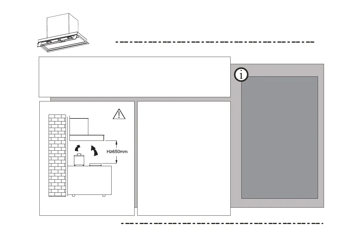 a menos de 650 mm ni a más