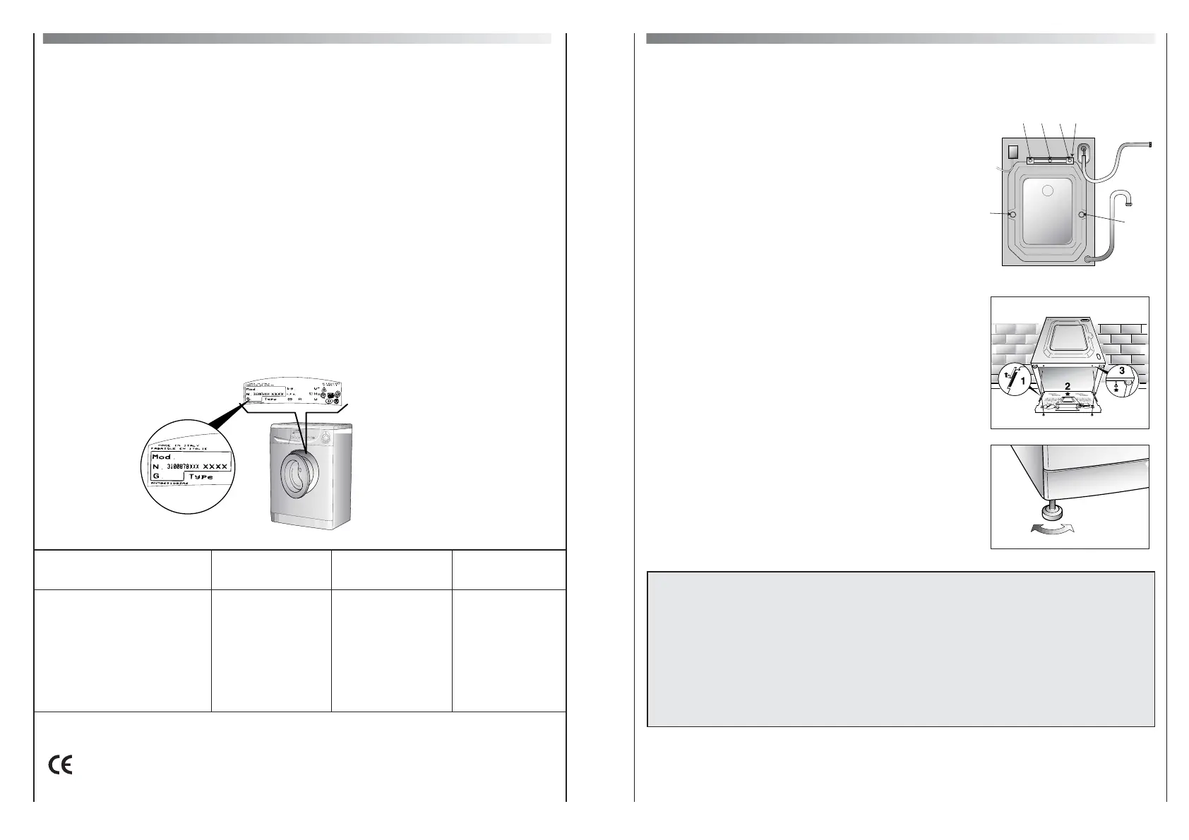 NB: For specifications regarding electrical data, see the data panel on the front of the washing