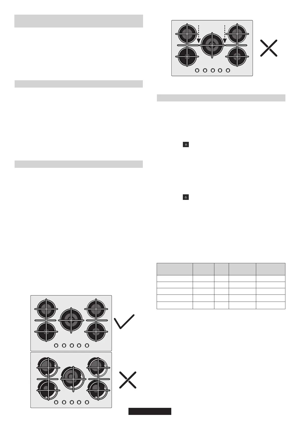 Voordat u de gaskookplaat inschakelt, moet u ervoor zorgen dat de