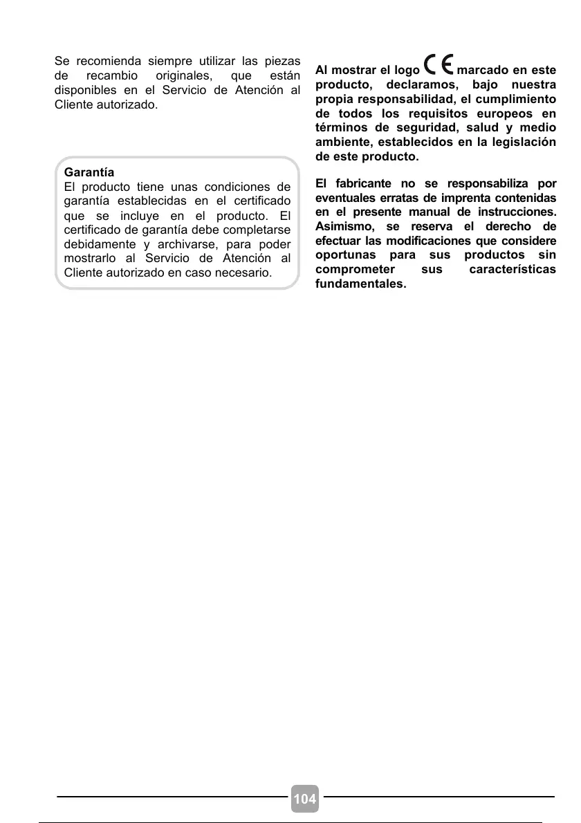 El fabricante no se responsabiliza por