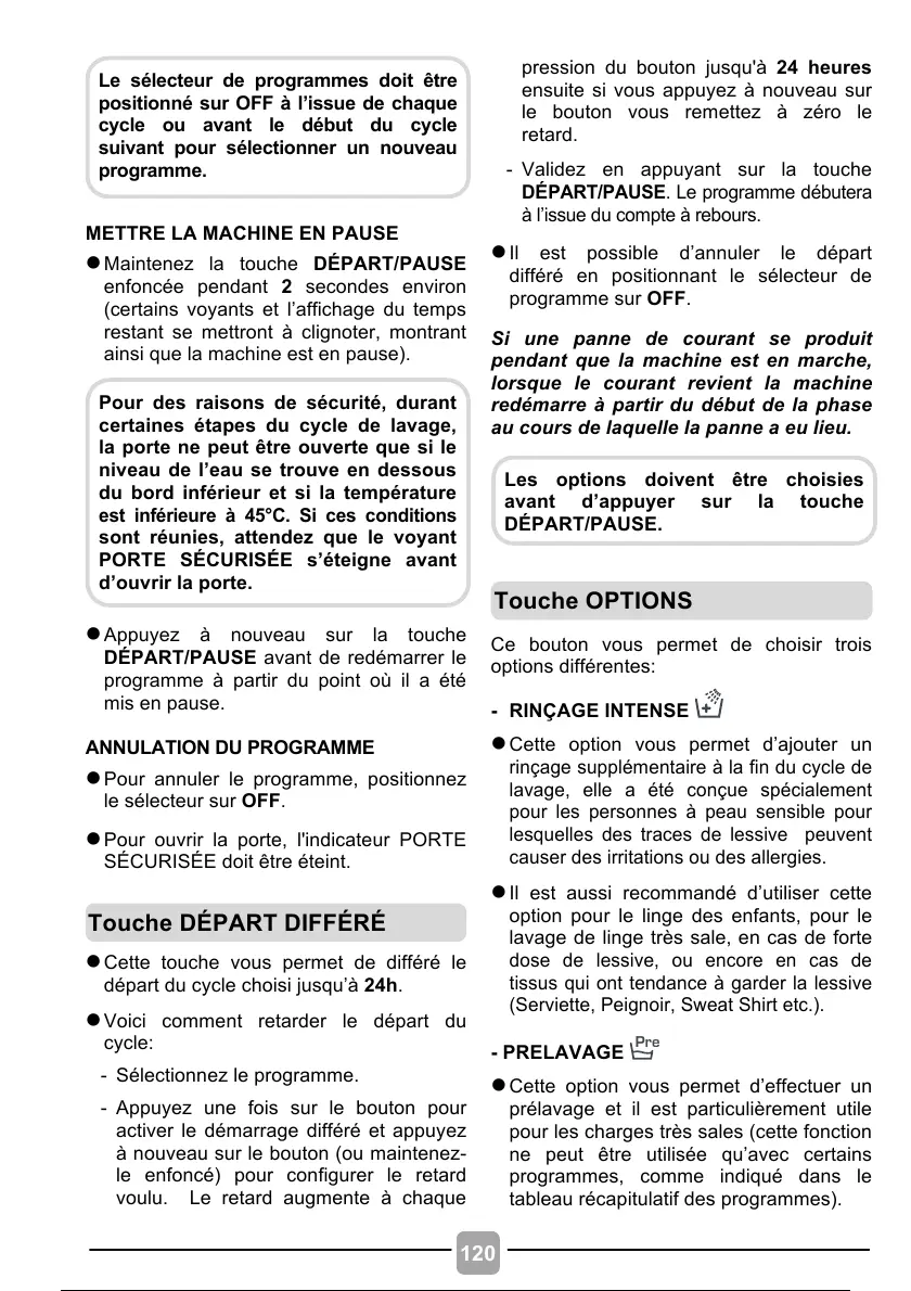 DÉPART/PAUSE avant de redémarrer le