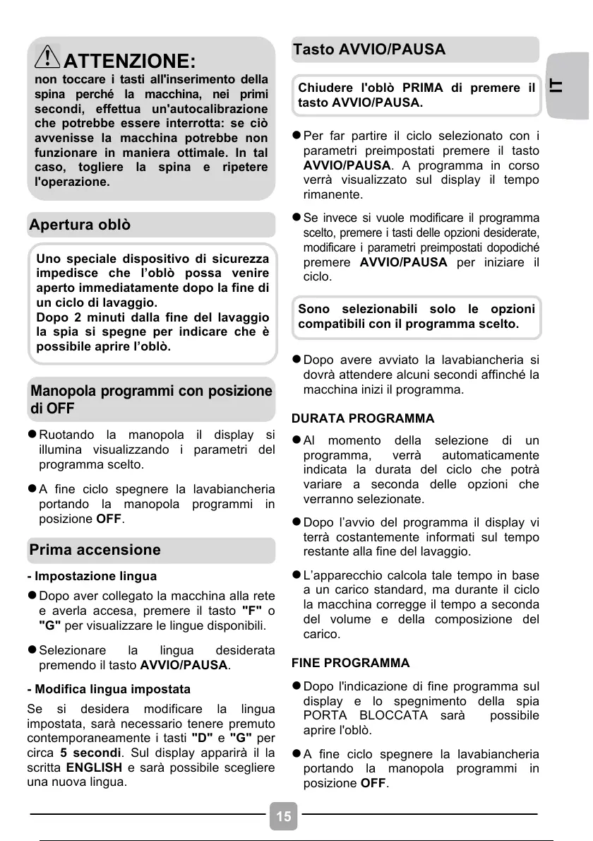 l Dopo avere avviato la lavabiancheria si