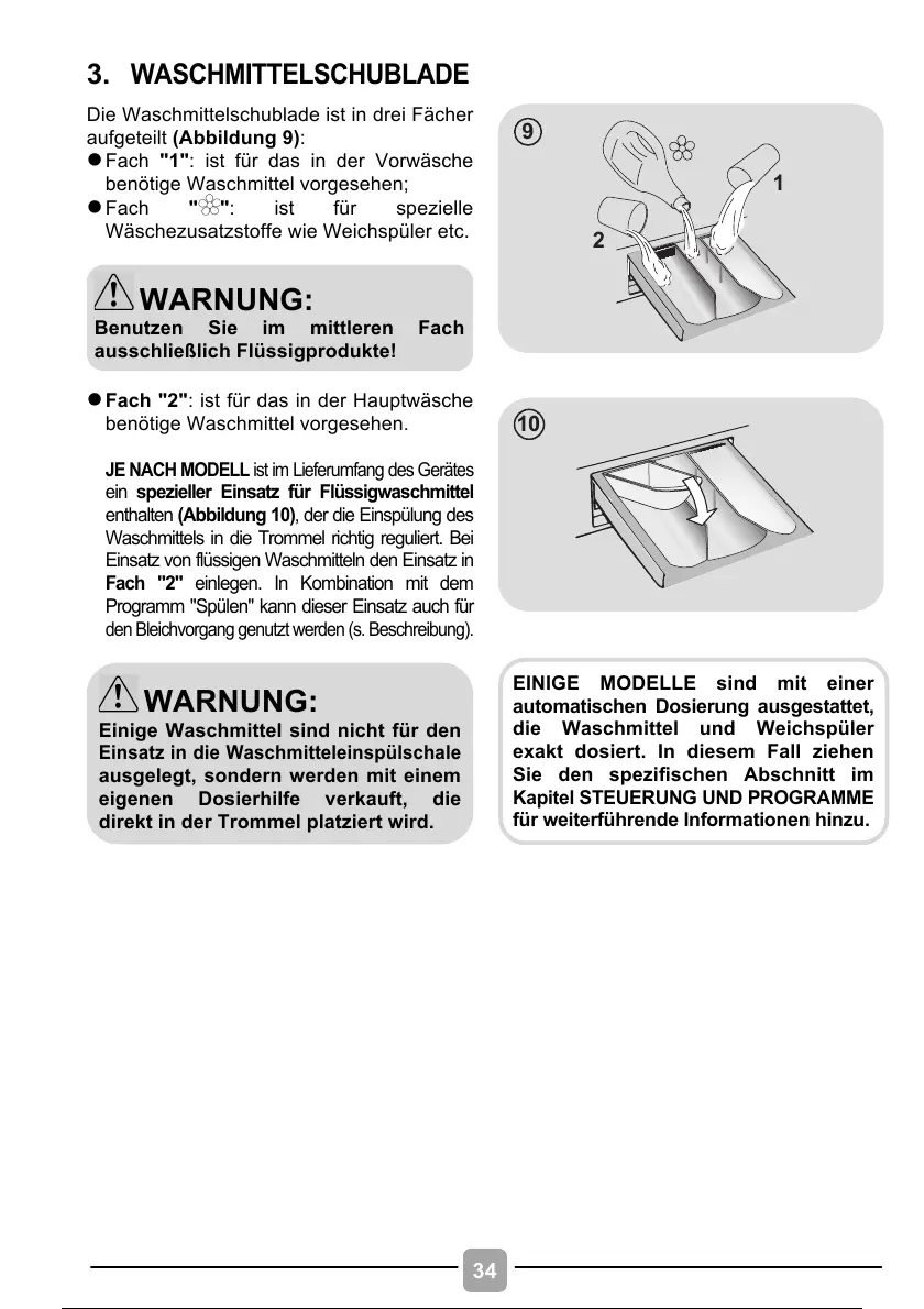 Waschmittels in die Trommel richtig reguliert. Bei