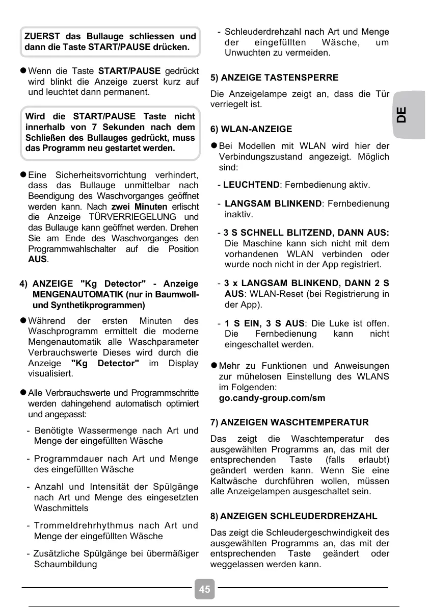 Mengenautomatik alle Waschparameter