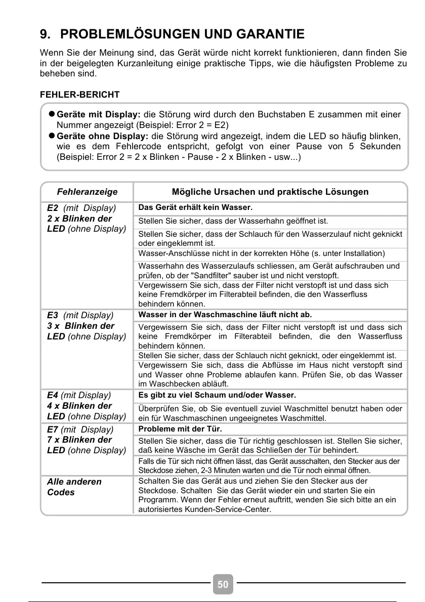 9. PROBLEMLÖSUNGEN UND GARANTIE