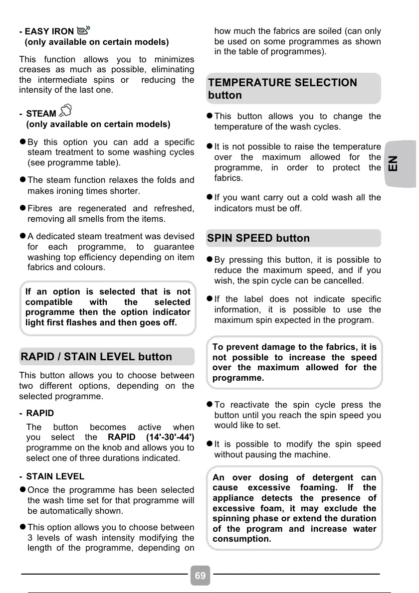 steam treatment to some washing cycles