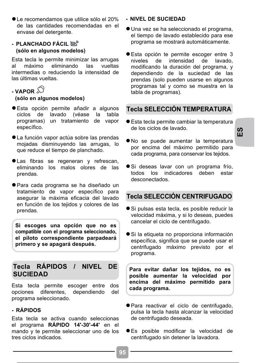 l La función vapor actúa sobre las prendas