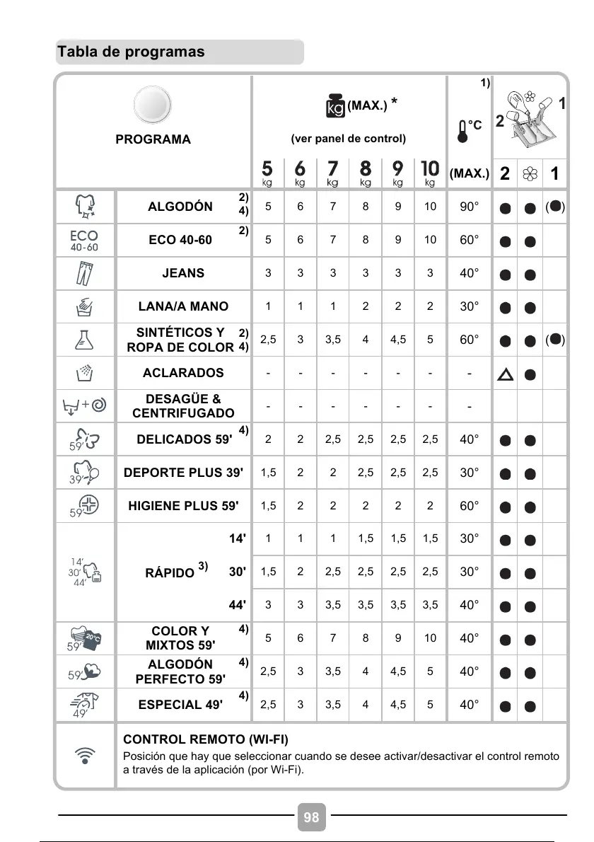 Tabla de programas