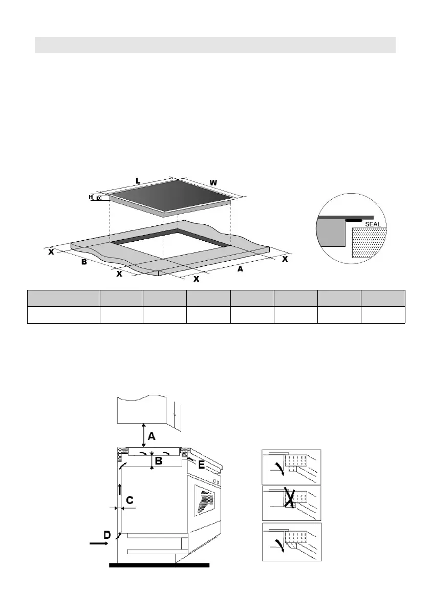 Note: The safety distance between the hotplate and the cupboard above the hotplate
