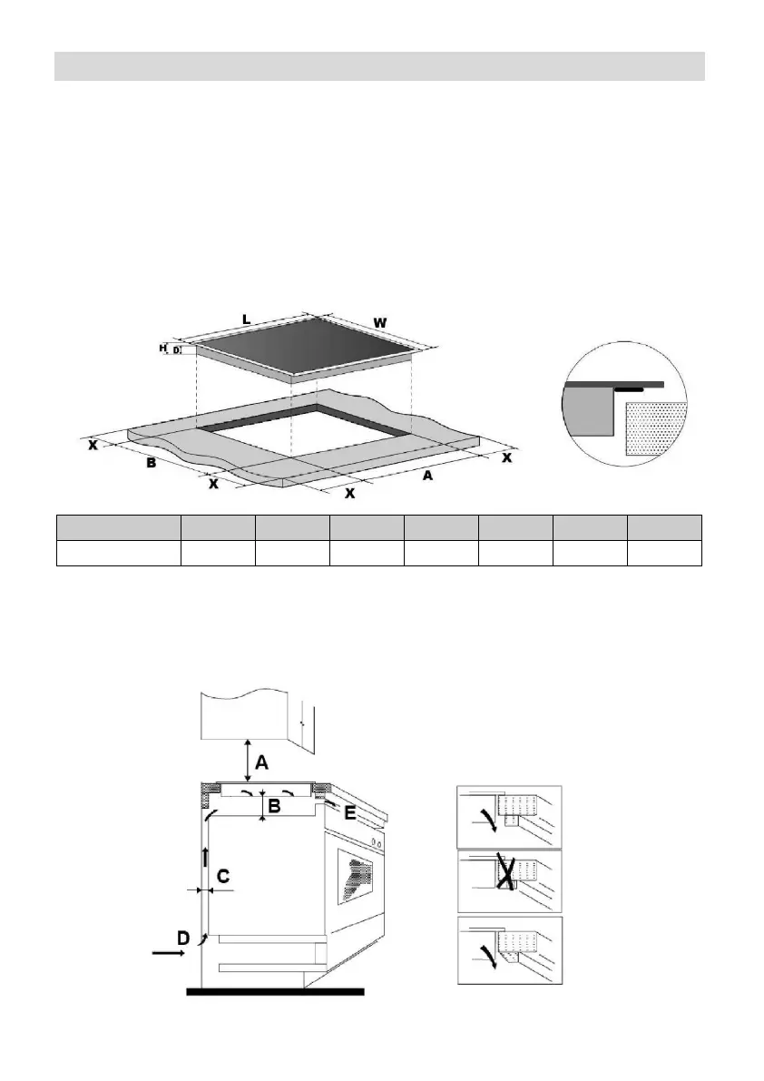 Remarque : la distance de sécurité entre la plaque et le placard situé au-dessus