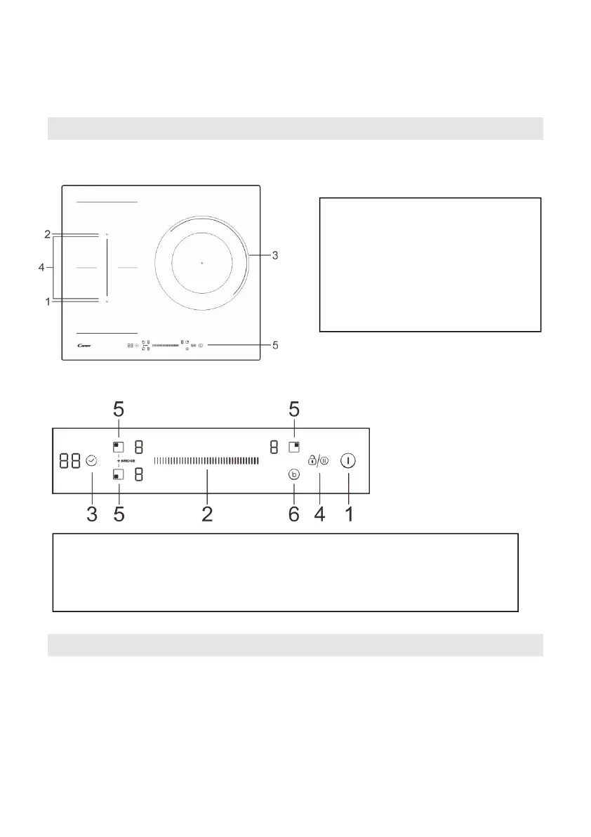 2. Power/Timer regulating key 5. Heating zone selection controls