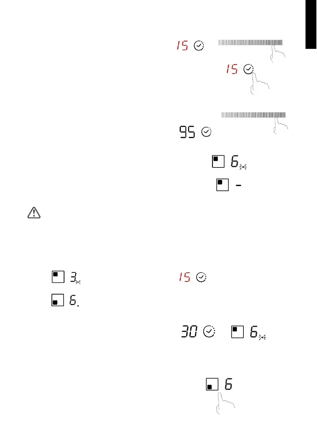 za kuvanje. Displej minuta prikazuje minimalni tajmer. Tačka odgovarajuće zone treperi.
