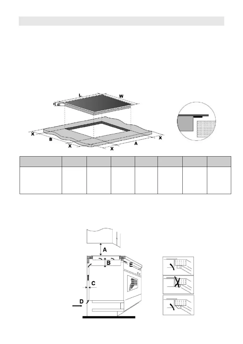 Uwaga: Bezpieczna odległość między płytą grzejną a szafką nad płytą powinna