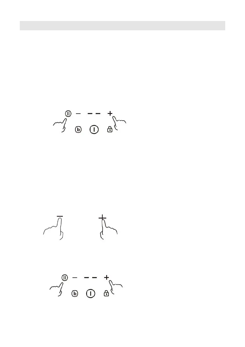 1. Turn on the hob, then press at the same time the “+”(timer) and Pause. The time