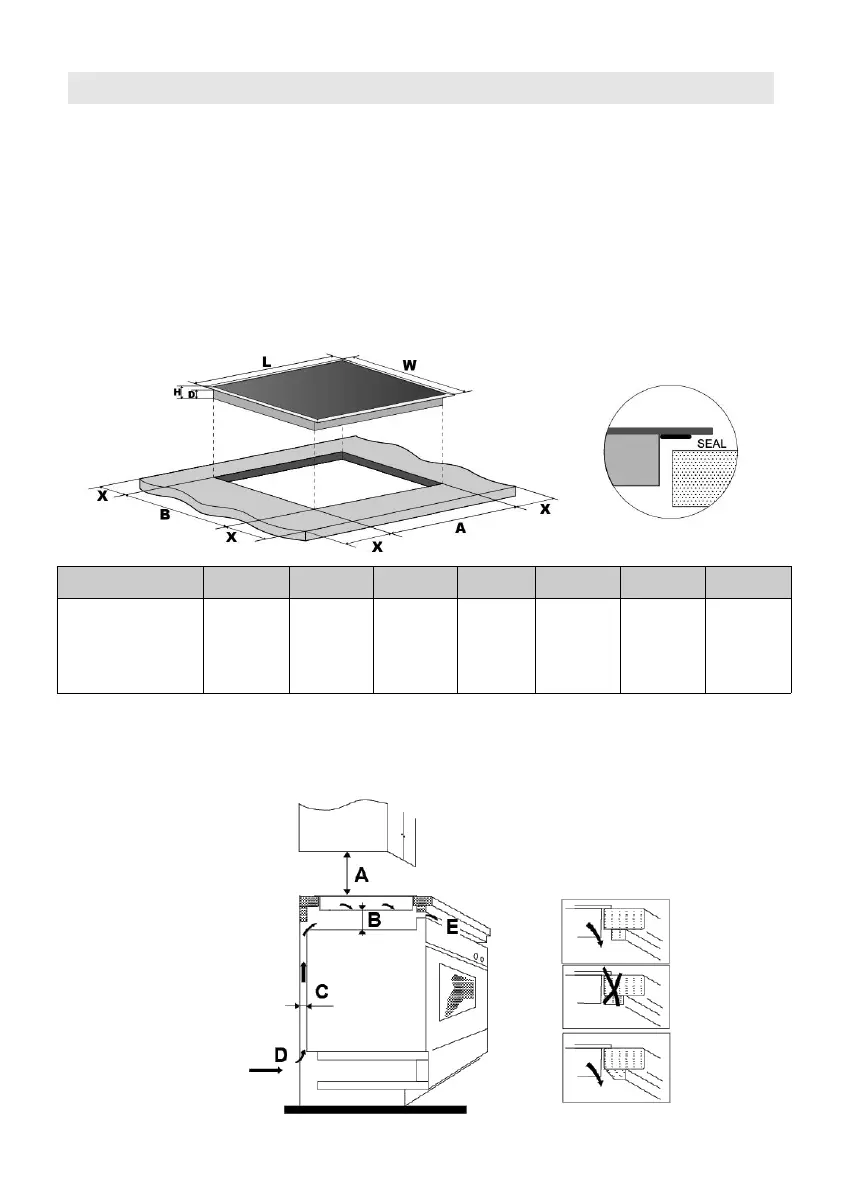 outlet are not blocked. Ensure the hob is in good work state. As shown below