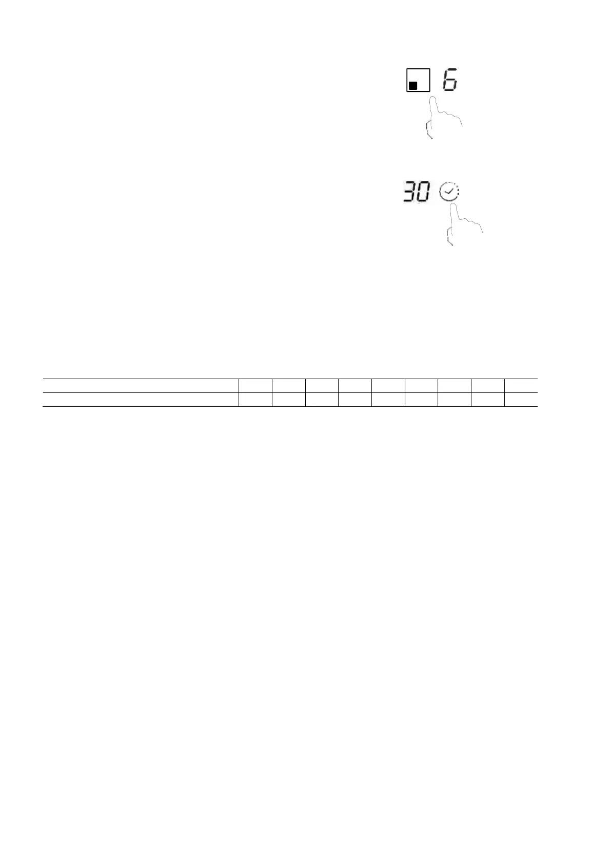 lekapcsolni a főzést. A különböző teljesítményszintek alapértelmezett üzemidejét az alábbi táblázat mutatja: