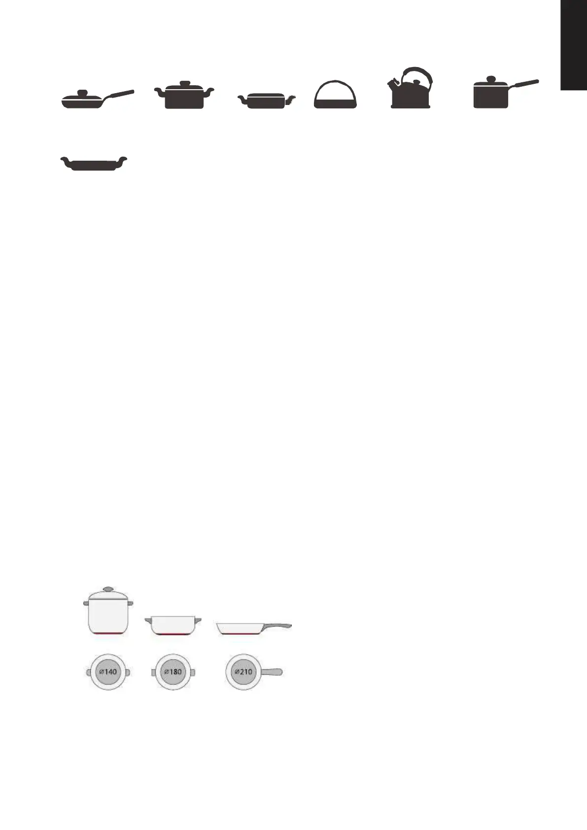 Koristite posude čiji je prečnik feromagnetnog područja (dno posude) u skladu s