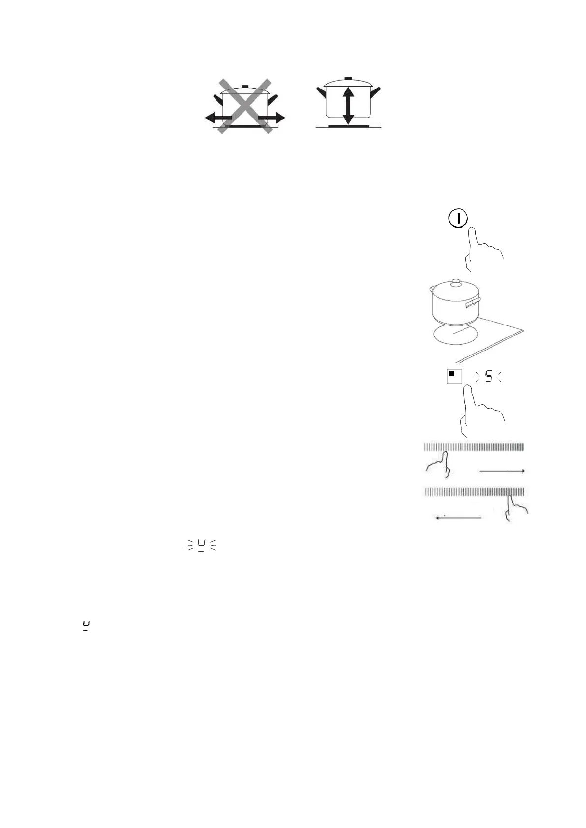 oglasi jedanput, svi zasloni prikazuju „–” ili „– –”, označavajući da je indukcijska ploča