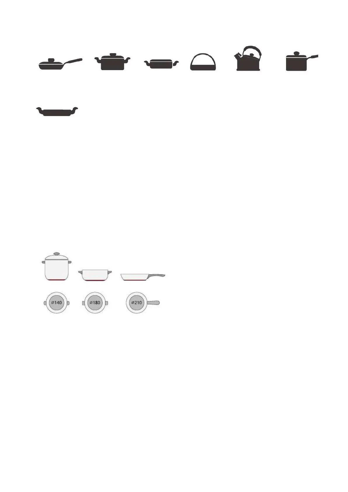 U skladu s dimenzijama zone možete upotrebljavati lonce različitih promjera kako je prikazano u nastavku: