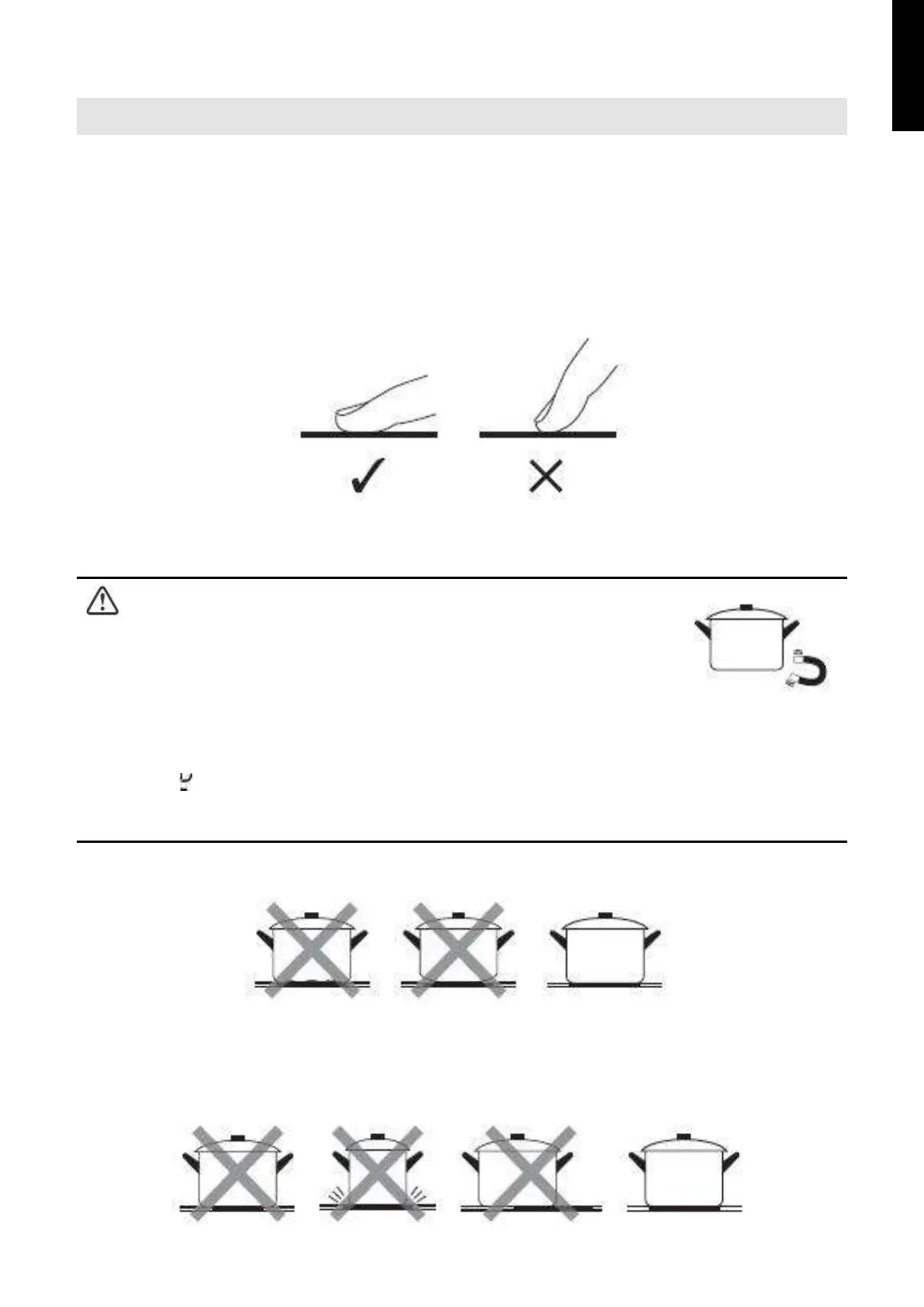 zona de gătit. Utilizați vase al căror diametru să fie la fel de mare ca desenul de pe zona selectată.