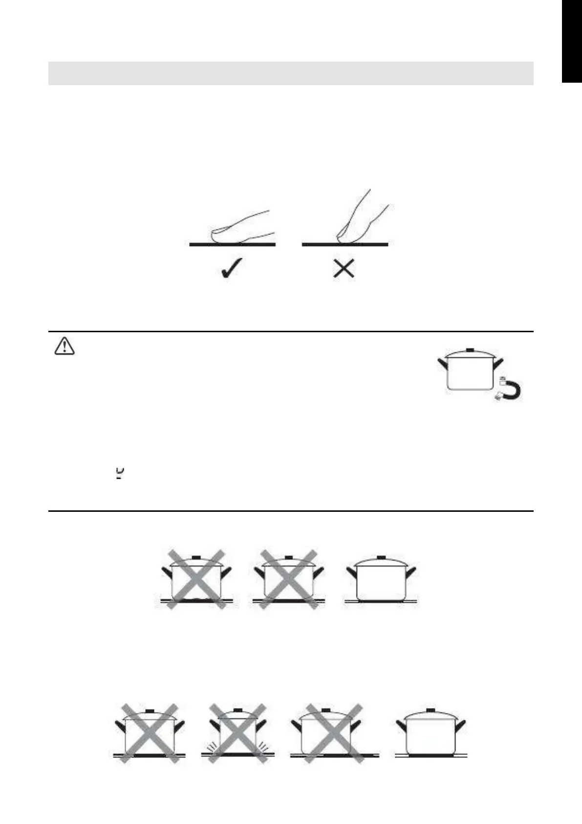 Benutzen Sie kein Kochgeschirr mit scharfen Kanten oder gewölbtem Boden.