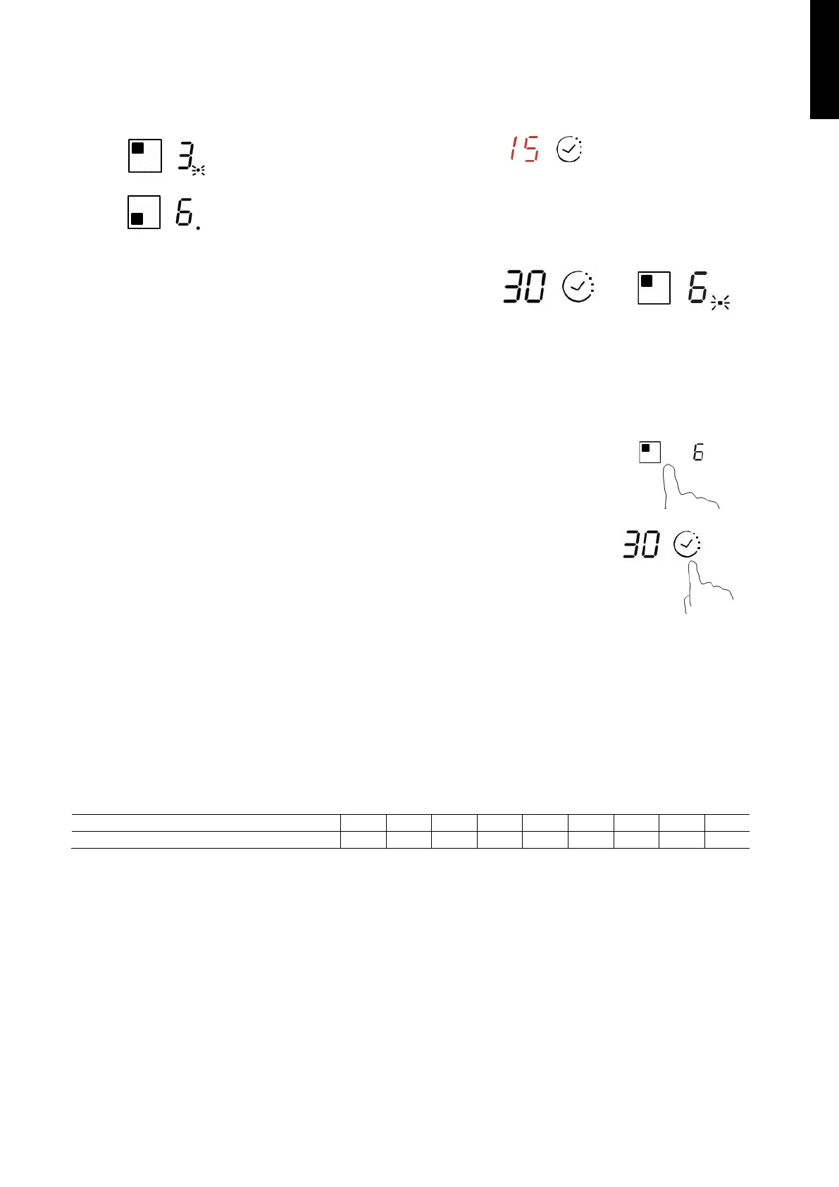 Betätigen der Kochzonenauswahl und in der Zeitanzeige wird die entsprechende Zeitschaltuhr angezeigt.