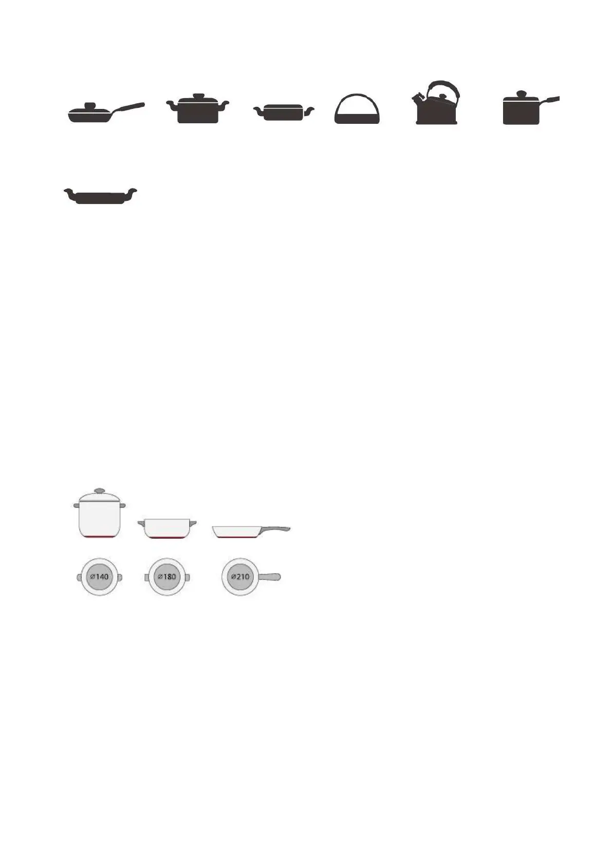 Je nach Größe der Zone können Sie unterschiedlich großes Kochgeschirr benutzen (siehe Abbildung