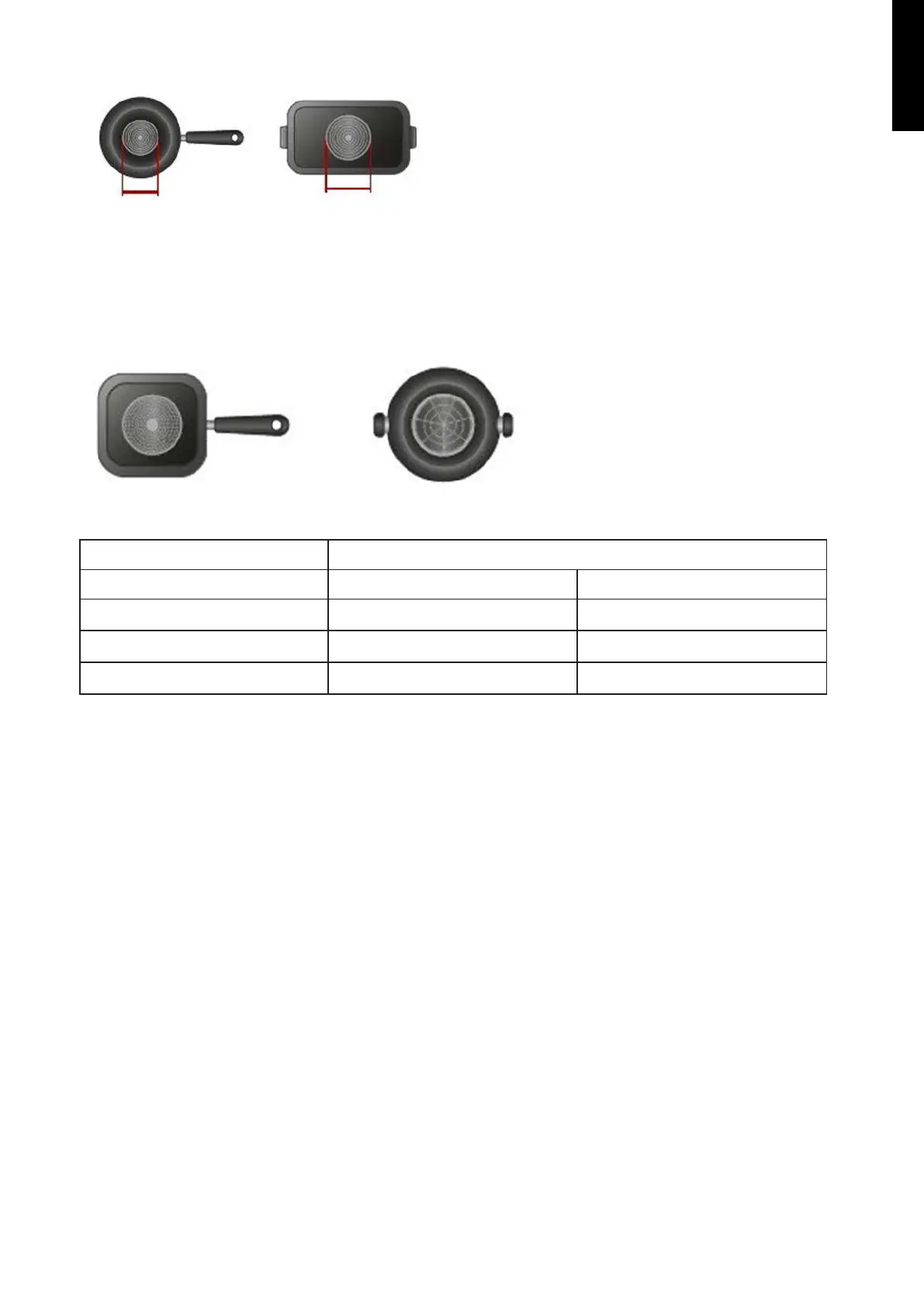 Falls das Kochgeschirr einen Boden wie in den Abbildungen unten hat, wird es möglicherweise nicht erkannt.