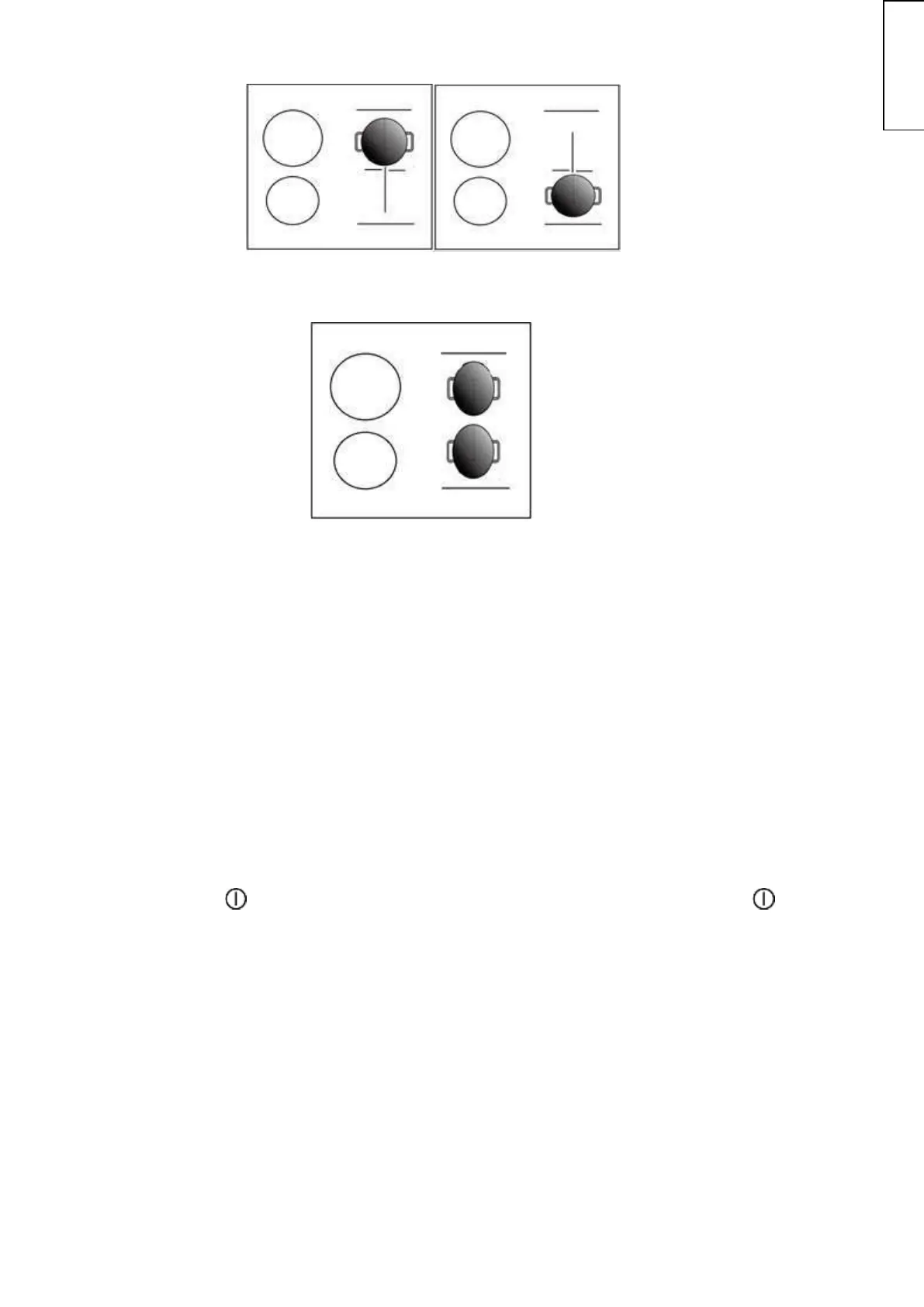 (b) Posez deux casseroles, l’une de chaque côté de la zone libre de cuisson.