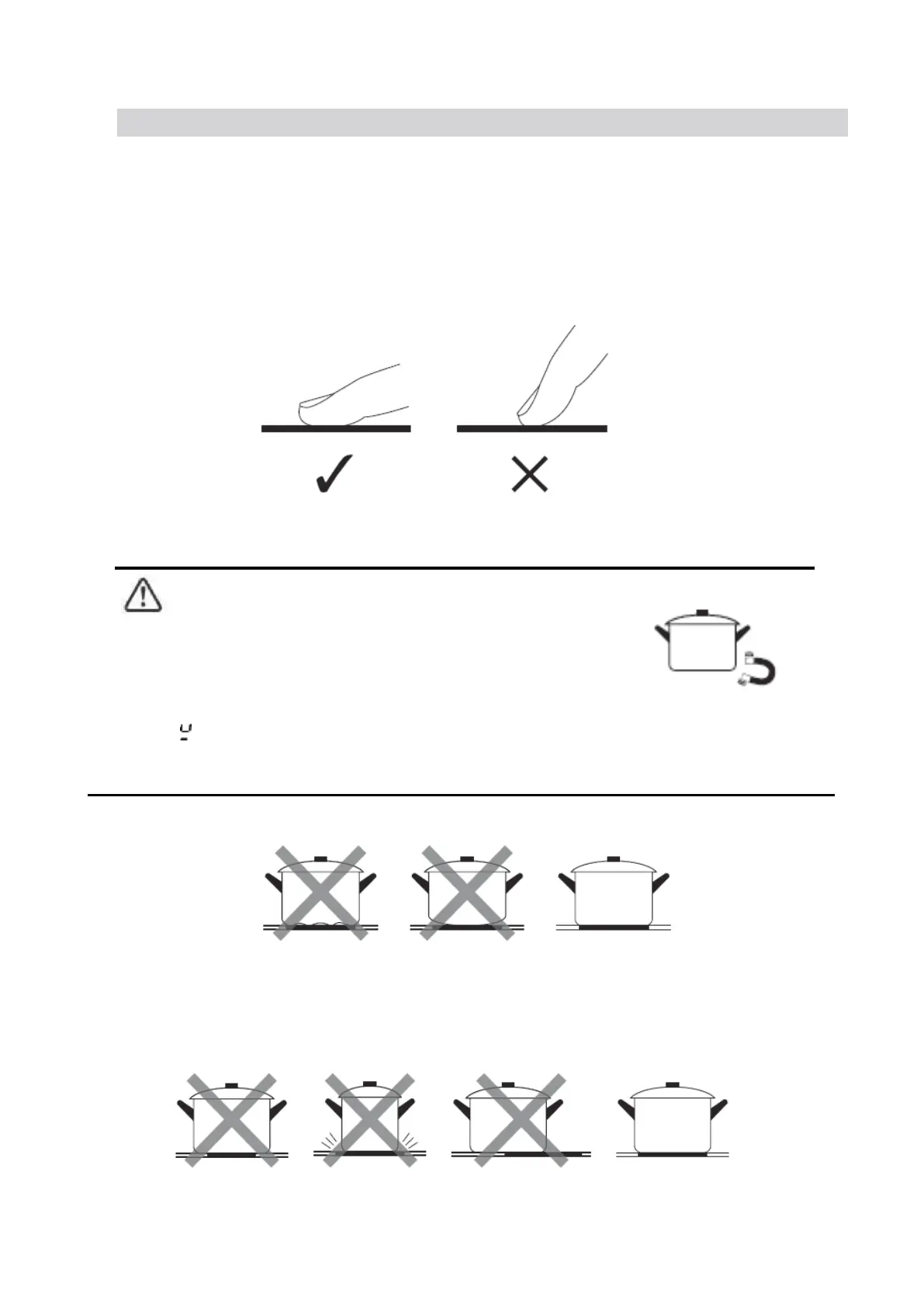 Upewnić się, że podstawa patelni jest gładka, leży płasko na szkle i ma taki sam rozmiar jak strefa