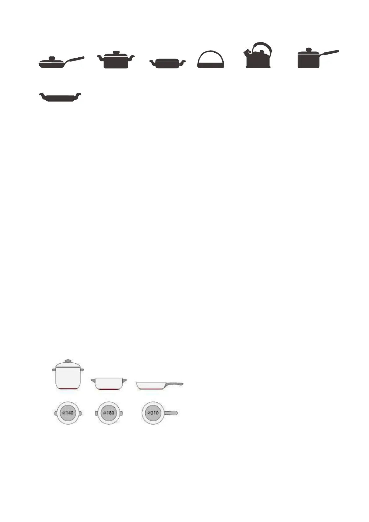 Używać wyłącznie ferromagnetycznych naczyń kuchennych wykonanych ze stali