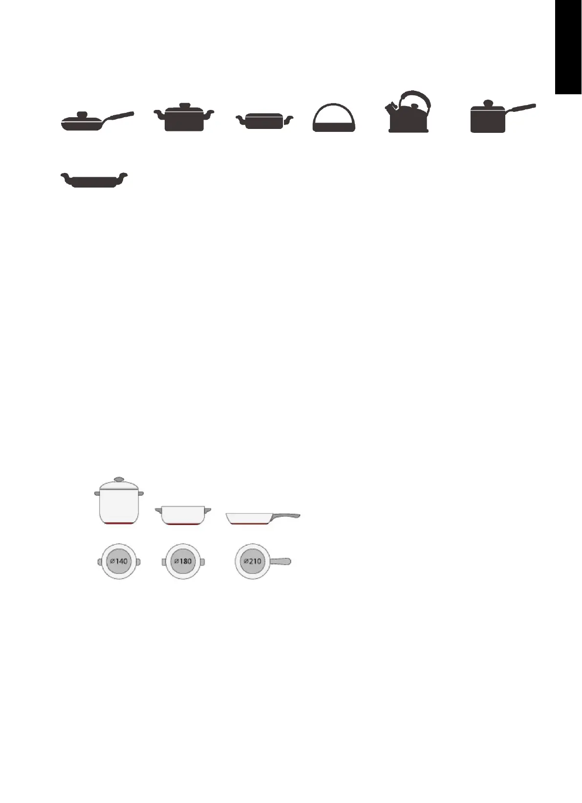 - Jeśli użyjesz garnków o średnicy mniejszej niż wskazana w tabeli 1, mogą one nie zostać wykryte