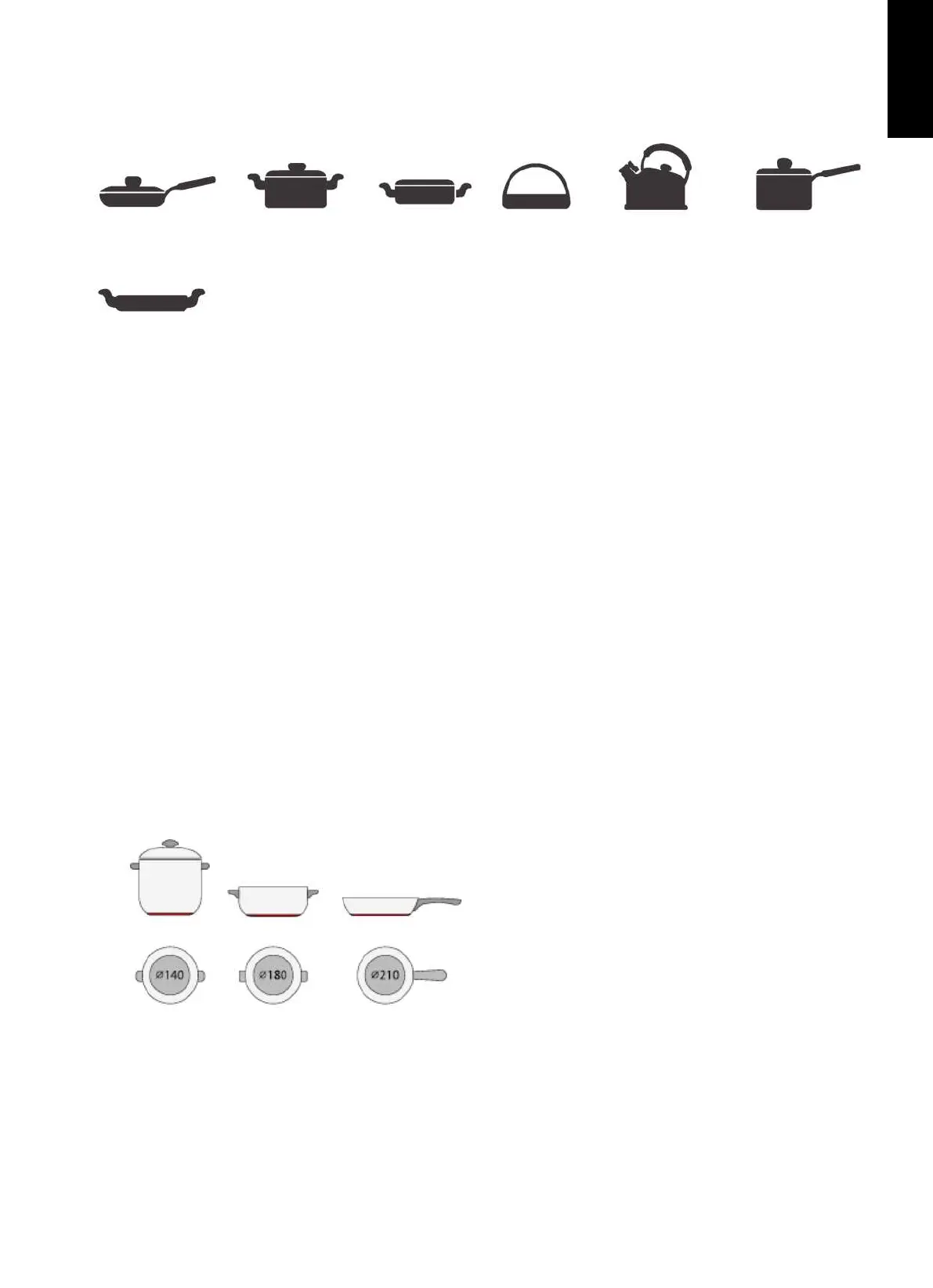 U skladu s dimenzijom zone, možete upotrebljavati lonce različitih promjera kao što se prikazuje na
