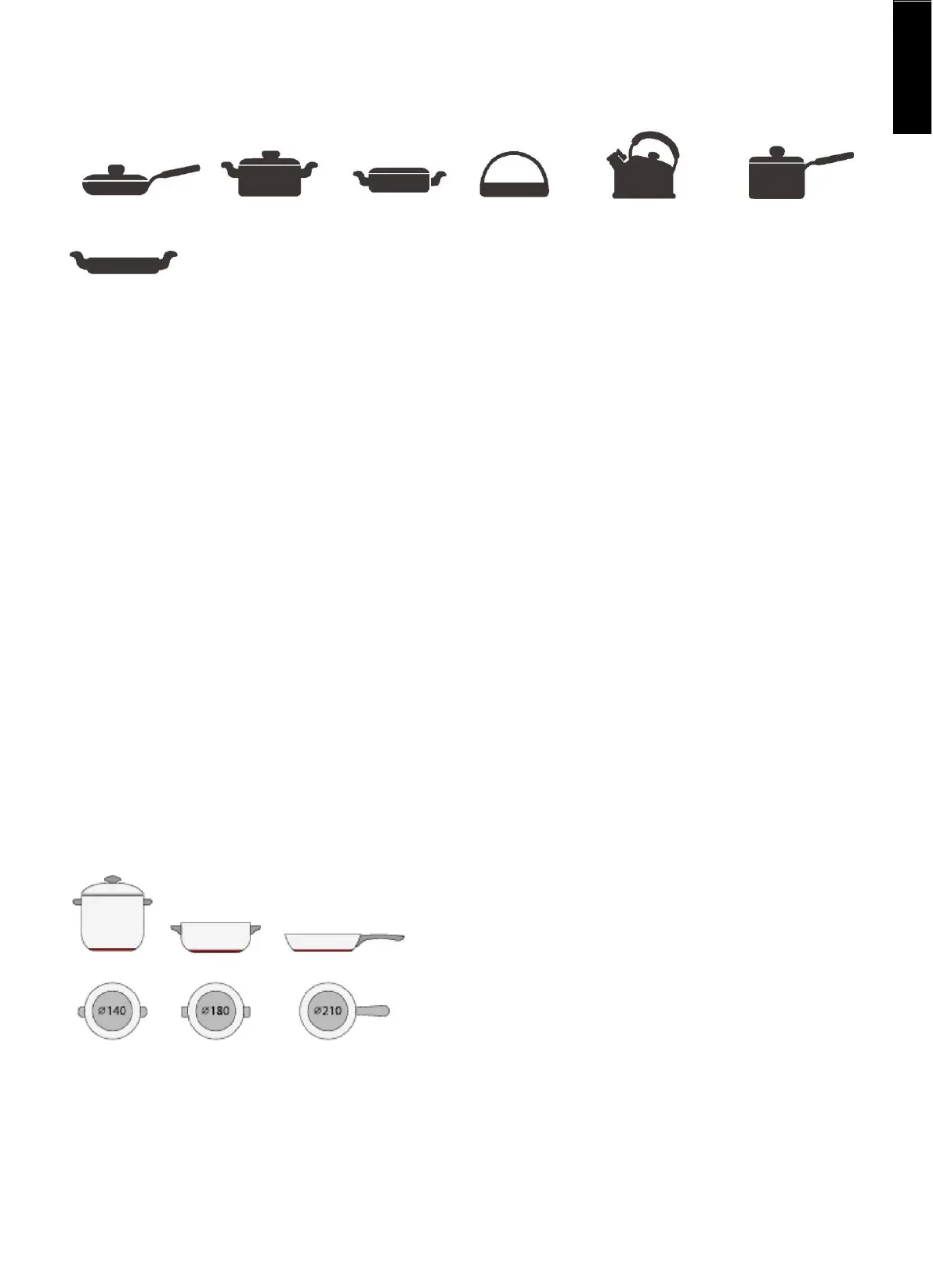 4. Folosiți vase al căror diametru al zonei feromagnetice (vaza vasului) este în intervalul de dimensiuni