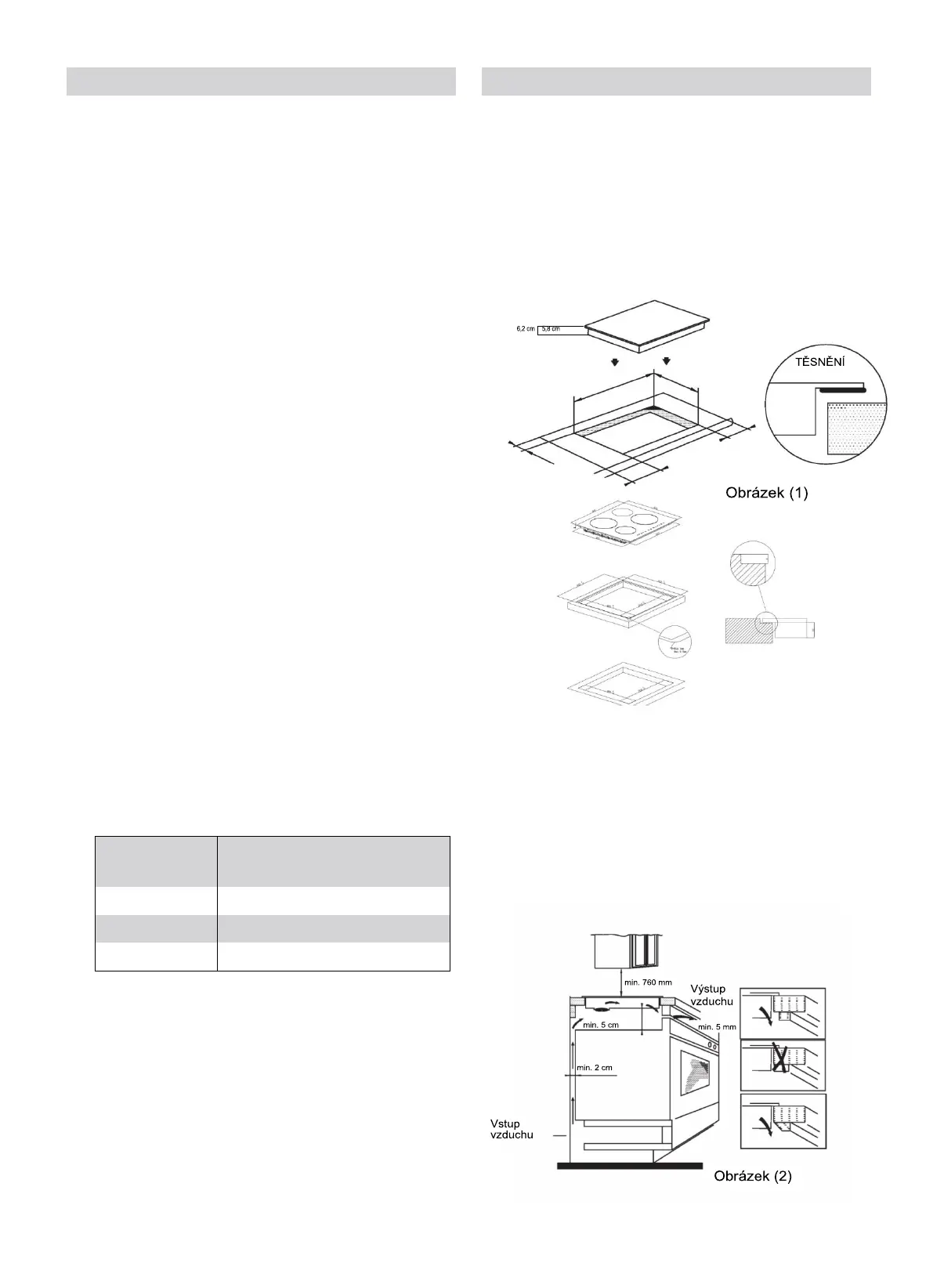 zůstat místo minimálně 50 mm. Pracovní