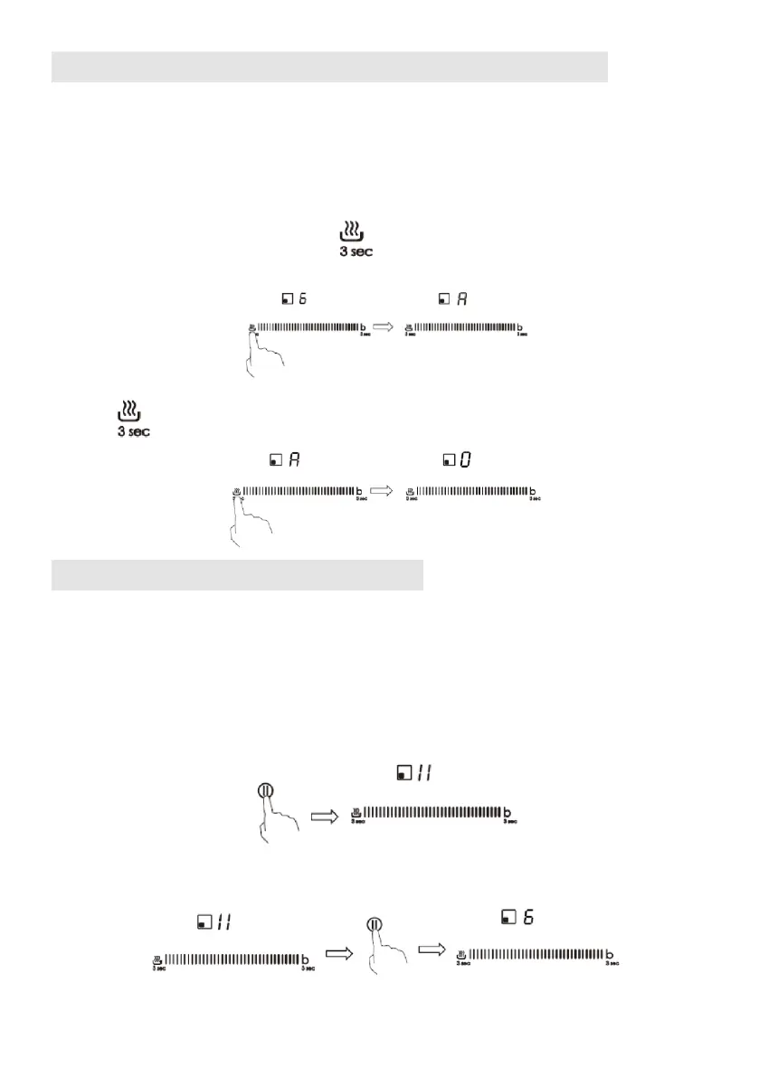 nato gumb pridržite za 3 sekunde; na indikatorju kuhališča se prikaže »A«.
