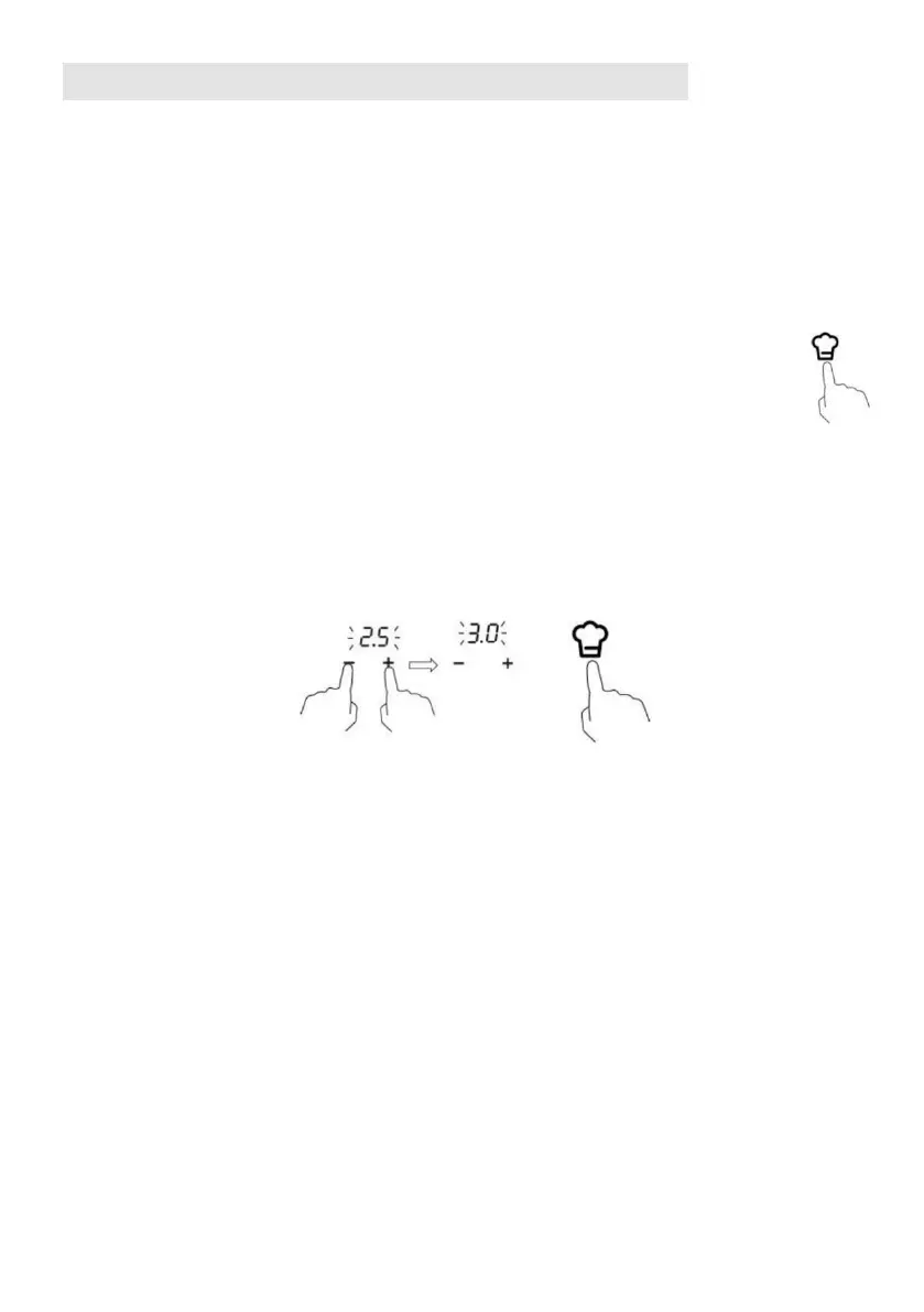 Wenn Sie diese durch Berühren von „+“ erhöhen, piept das Kochfeld dreimal und die