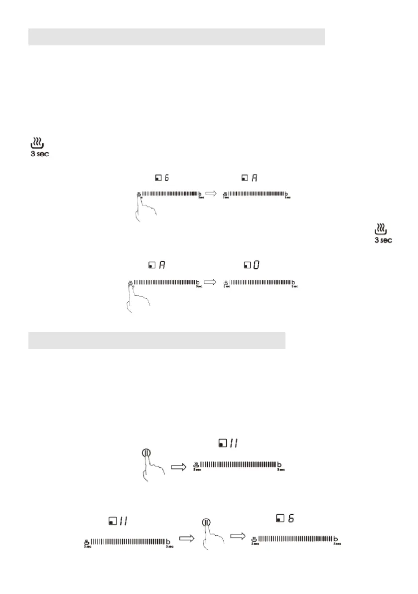 3 Sekunden lang. Die Kochzone kehrt auf Leistungsstufe „0“ zurück.