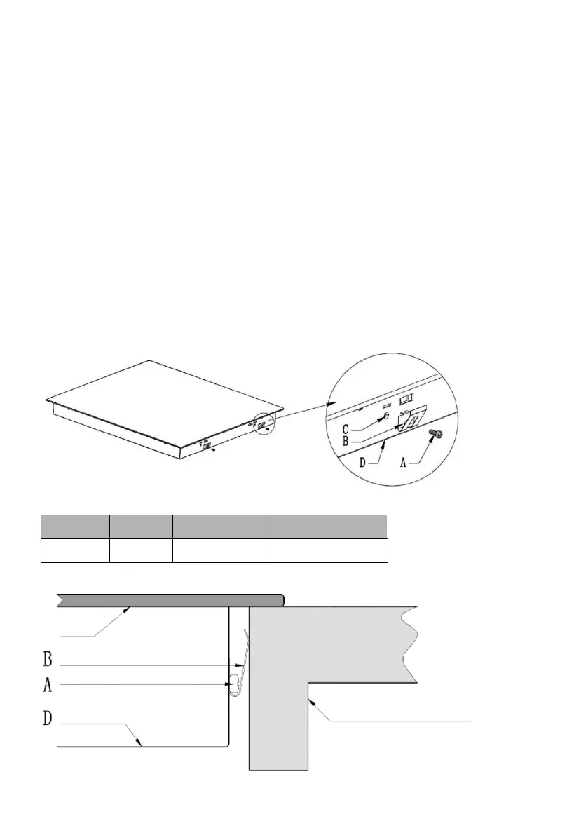 Fixieren Sie das Kochfeld nach dem Einbau in die Arbeitsfläche mit 4 angeschraubten
