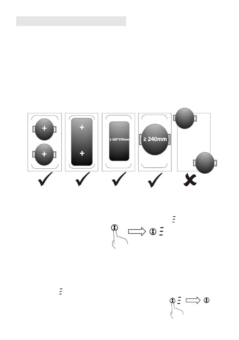 • Σημαντικό: Φροντίστε να τοποθετήσετε τα μαγειρικά σκεύη στο κέντρο της ζώνης
