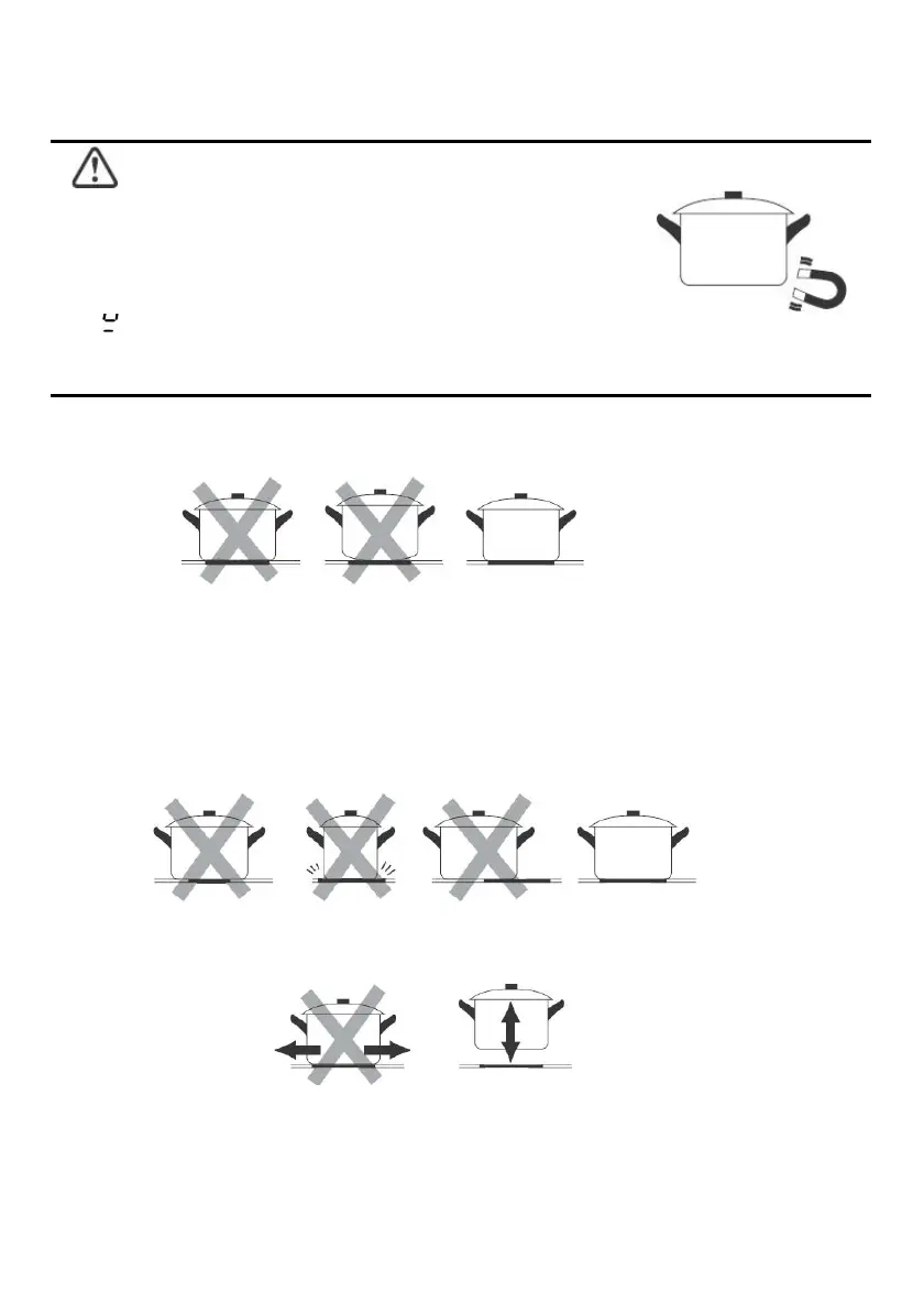 • Cookware made from the following materials is not suitable: pure stainless steel, aluminiumor