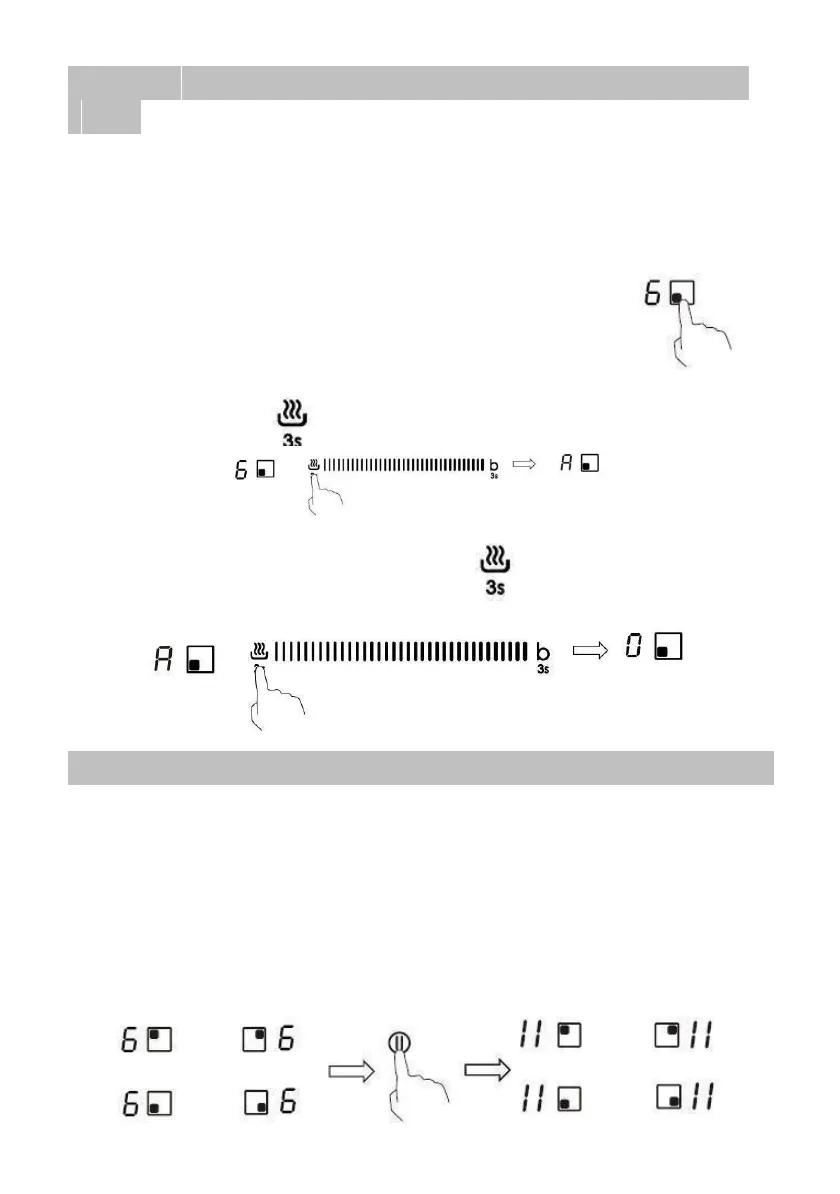 2. Stiskněte tlačítko a podržte 3 sekundy, na displeji varné zóny se