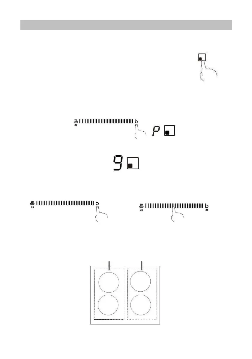 2. Нажмите кнопку «b» и удерживайте 3 секунды, зона нагрева начнет