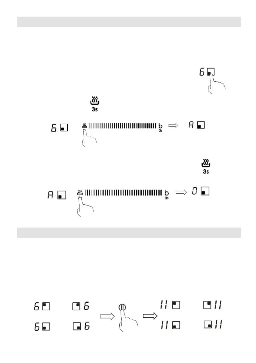 „ll“ an. Der Betrieb aller Kochzonen wird deaktiviert, mit Ausnahme der Tasten