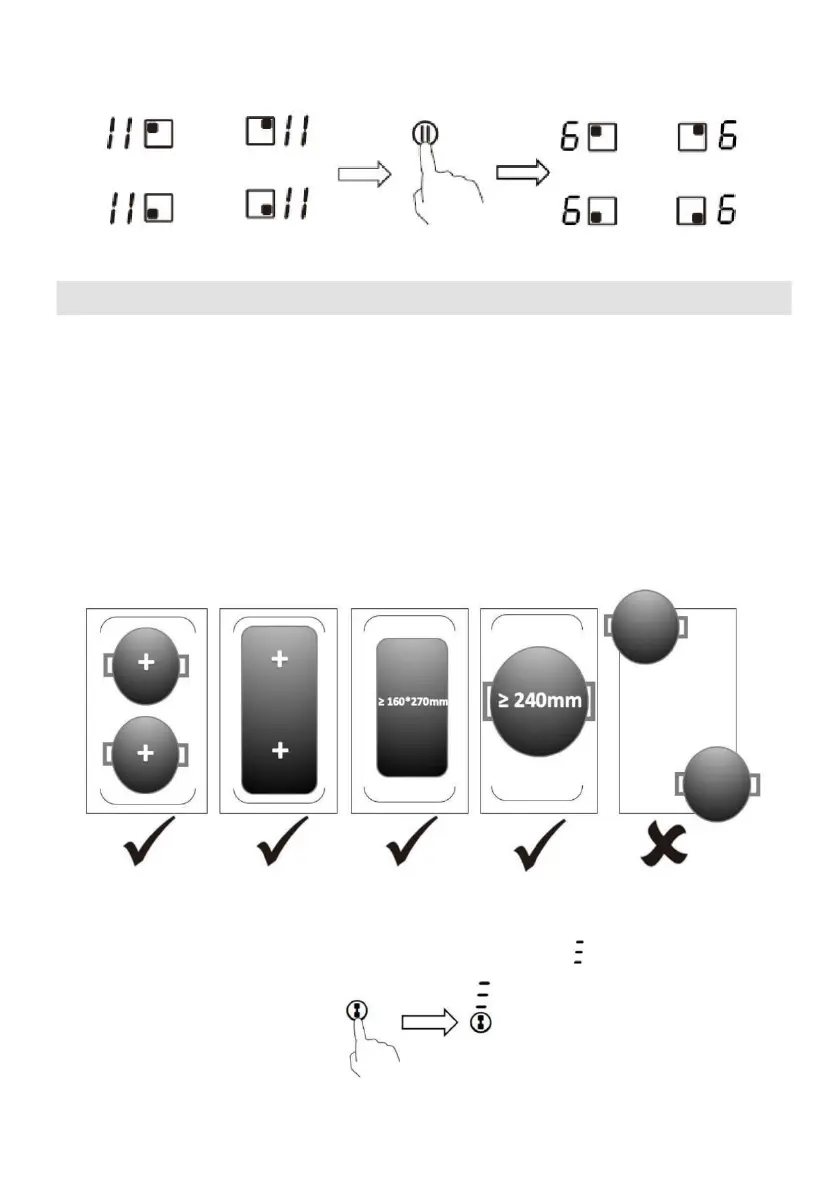 • Wichtig: Stellen Sie sicher, dass das Kochgeschirr auf der Einzelkochzone