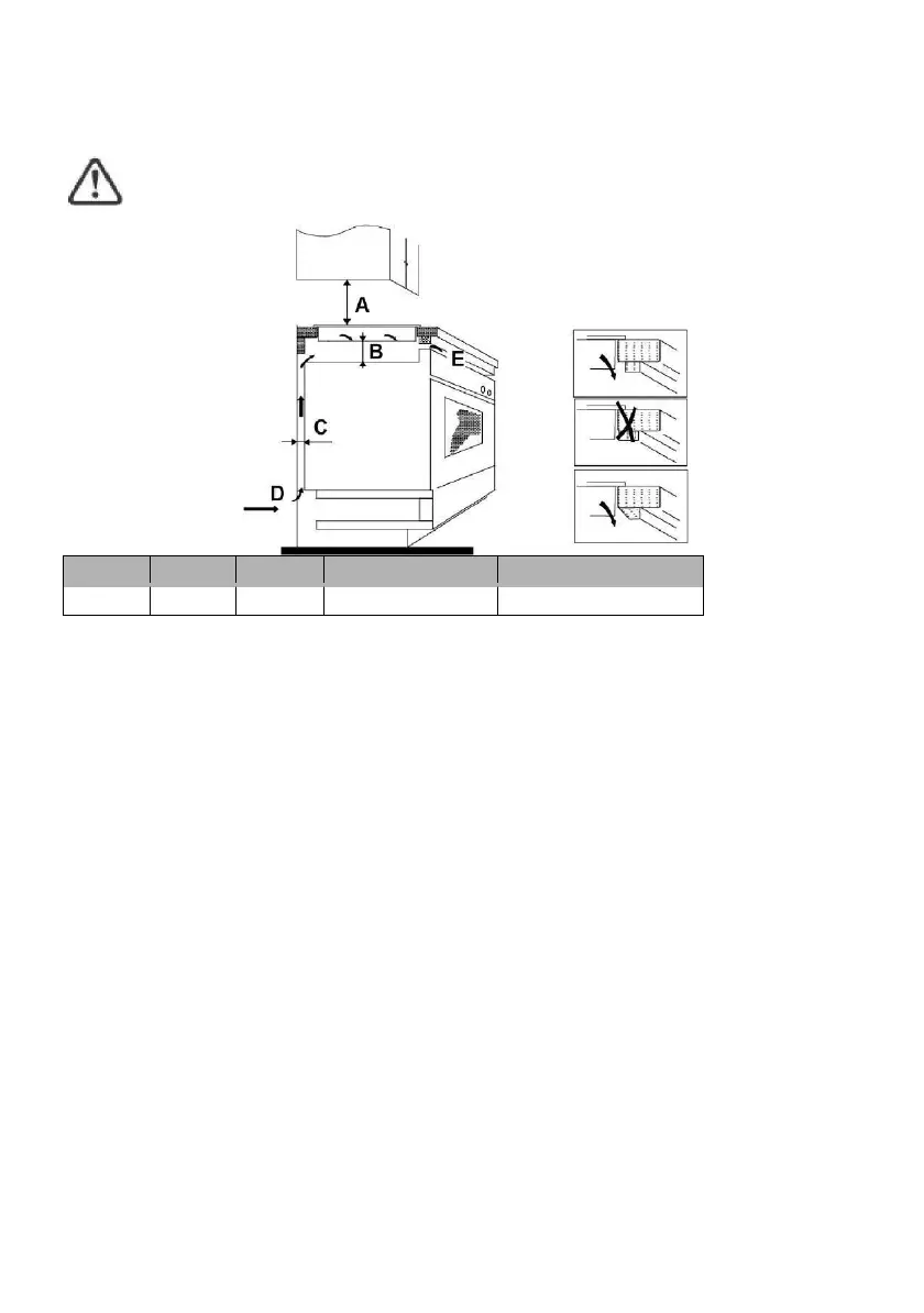 Nota: la distanza di sicurezza tra il piano cottura e i pensili sovrastanti