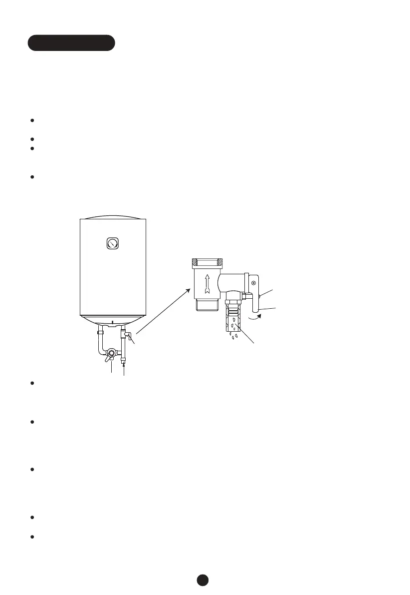 A válvula de alívio de pressão do aquecedor deve ser instalada na entrada de água fria do