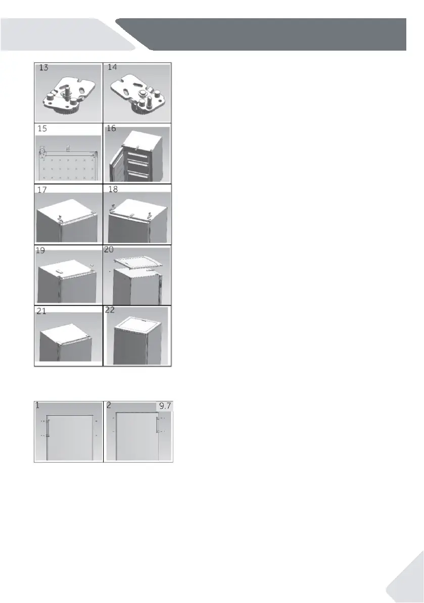 15. Rögzítse a zsanért a szekrény ellentétes pozíciójába