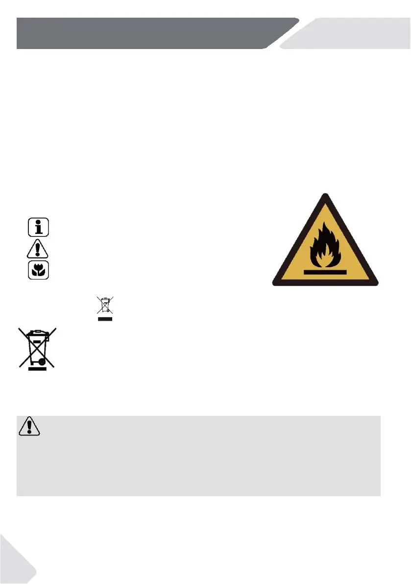 AVVERTENZA: Rischio di incendio / Materiale infiammabile. Il simbolo indica che esiste il rischio di